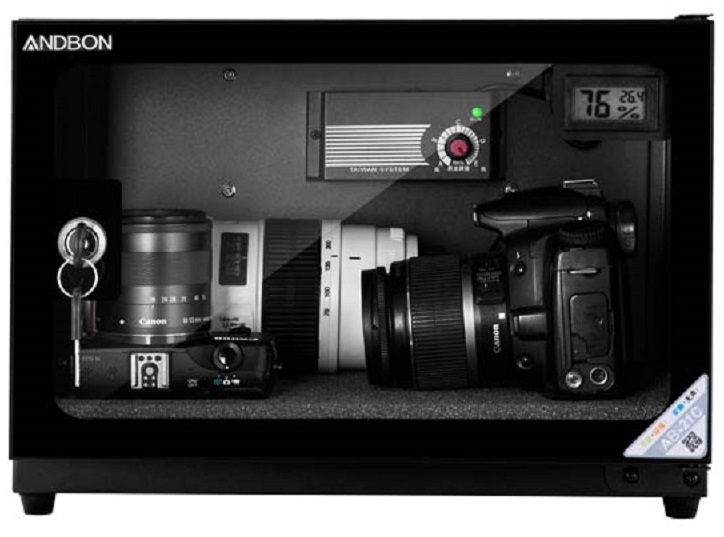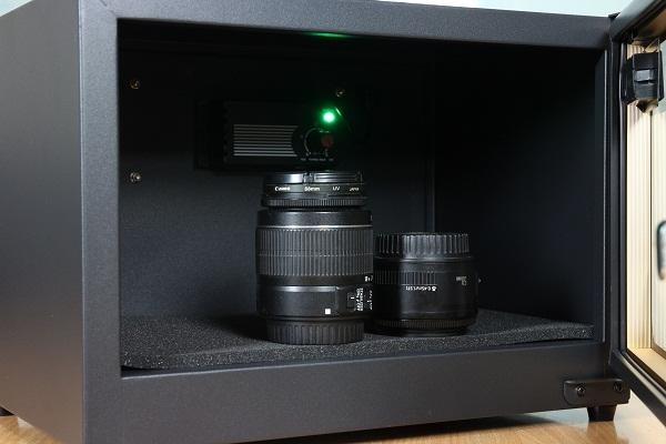 - Tủ chống ẩm gồm có một khoang, một cánh cửa kính 2 lớp chống xước được thiết kế chịu sự va đập và đảm bảo tuyệt đối độ ẩm bên trong với hệ thống gioăng cao su từ bao quanh tạo nên sự chắc chắn mỗi khi mở ra đóng vào.