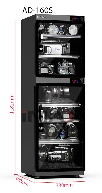 Tủ chống ẩm ANDBON AD-160S là một tủ kín, được chế tạo bằng tone, sơn tĩnh điện. Cánh cửa tủ có cấu tạo bằng kính và có thêm ổ khóa bảo vệ, các cạnh mép cánh cửa có gioăng cao su để tăng độ kín khi đóng tủ. Bên trong tủ có bộ phận hút ẩm, đèn báo trạng thái hoạt động, đồng hồ đo độ ẩm (ẩm kế), đồng hồ đo nhiệt độ và nút điều chỉnh thông số. Ngoài ra tủ chống ẩm thường dùng các khay (dạng kéo) để chứa đồ. Do sử dụng điện để vận hành nên tủ chống ẩm thường để cố định một vị trí.