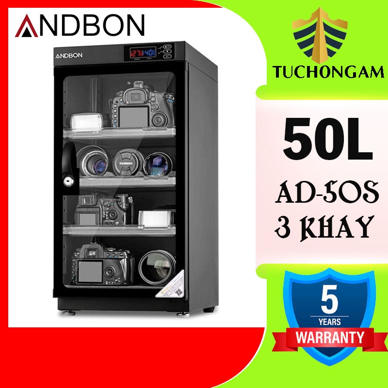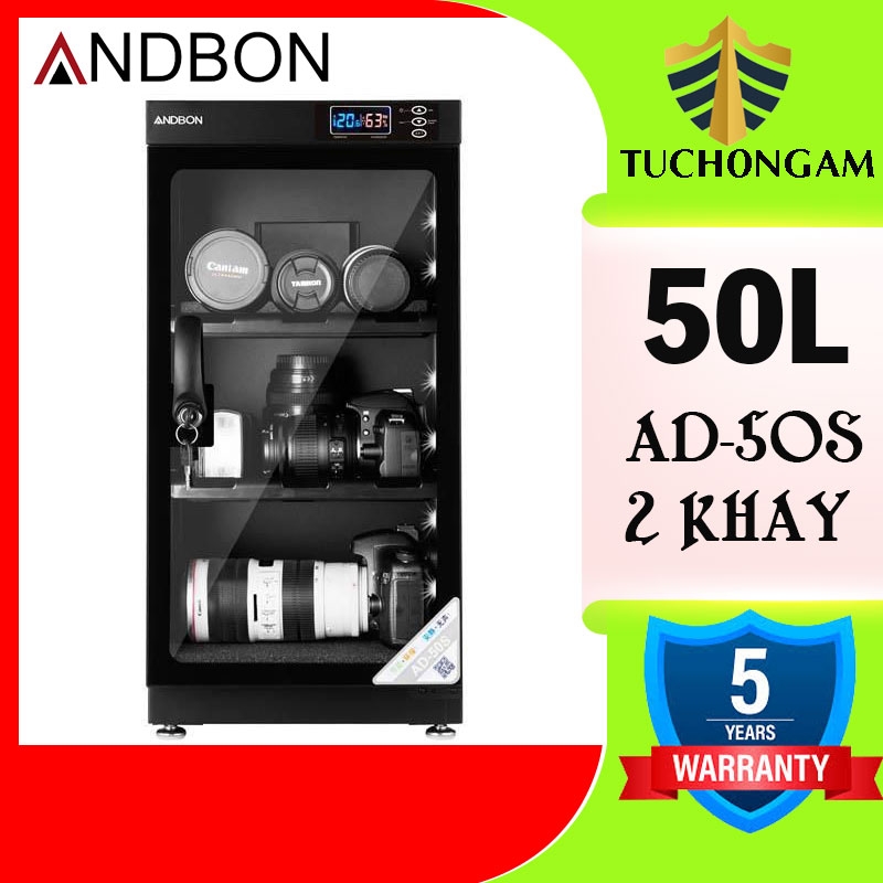 Tủ chống ẩm ANDBON AD-50S là một tủ kín, được chế tạo bằng tone, sơn tĩnh điện. Cánh cửa tủ có cấu tạo bằng kính và có thêm ổ khóa bảo vệ, các cạnh mép cánh cửa có giăng cao su để tăng độ kín khi đóng tủ. Bên trong tủ có bộ phận hút ẩm, đèn báo trạng thái hoạt động, đồng hồ đo độ ẩm (ẩm kế), đồng hồ đo nhiệt độ và nút điều chỉnh thông số. Ngoài ra tủ chống ẩm thường dùng các khay (dạng kéo) để chứa đồ. Do sử dụng điện để vận hành nên tủ chống ẩm thường để cố định một vị trí.