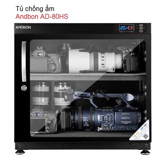 Tủ chống ẩm ANDBON AD-80HS là một tủ kín, được chế tạo bằng tone, sơn tĩnh điện. Cánh cửa tủ có cấu tạo bằng kính và có thêm ổ khóa bảo vệ, các cạnh mép cánh cửa có gioăng cao su để tăng độ kín khi đóng tủ. Bên trong tủ có bộ phận hút ẩm, đèn báo trạng thái hoạt động, đồng hồ đo độ ẩm (ẩm kế), đồng hồ đo nhiệt độ và nút điều chỉnh thông số. Ngoài ra tủ chống ẩm thường dùng các khay (dạng kéo) để chứa đồ. Do sử dụng điện để vận hành nên tủ chống ẩm thường để cố định một vị trí.