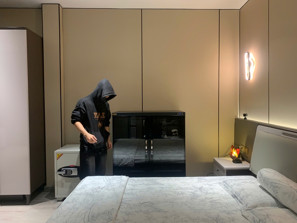 Van thông bên ngoài tủ được đóng lại, van thông phía trong tủ được mở ra, hơi ẩm được hấp thụ vào bộ phận làm khô của tủ chống ẩm tự động.