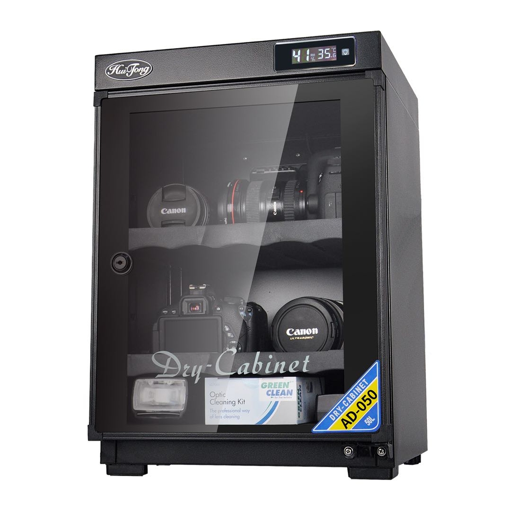 Tủ chống ẩm Huitong AD-050 với dung tích 50L, được thiết kế sang trọng, trang nhã. Bên trong tủ có 2 khay đựng, 3 tầng, một cửa và một khóa inox.