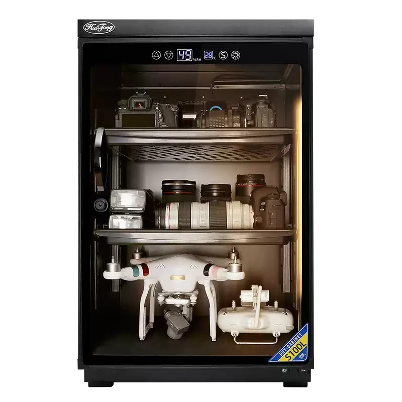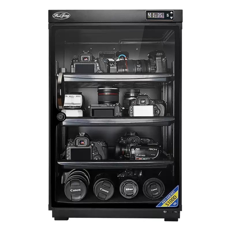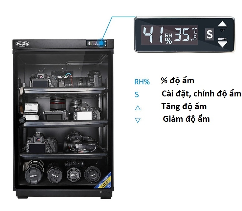 - Trên tủ được gắn 1 đồng hồ kỹ thuật số báo độ ẩm và có nút điều chỉnh độ ẩm ở bên ngoài.
