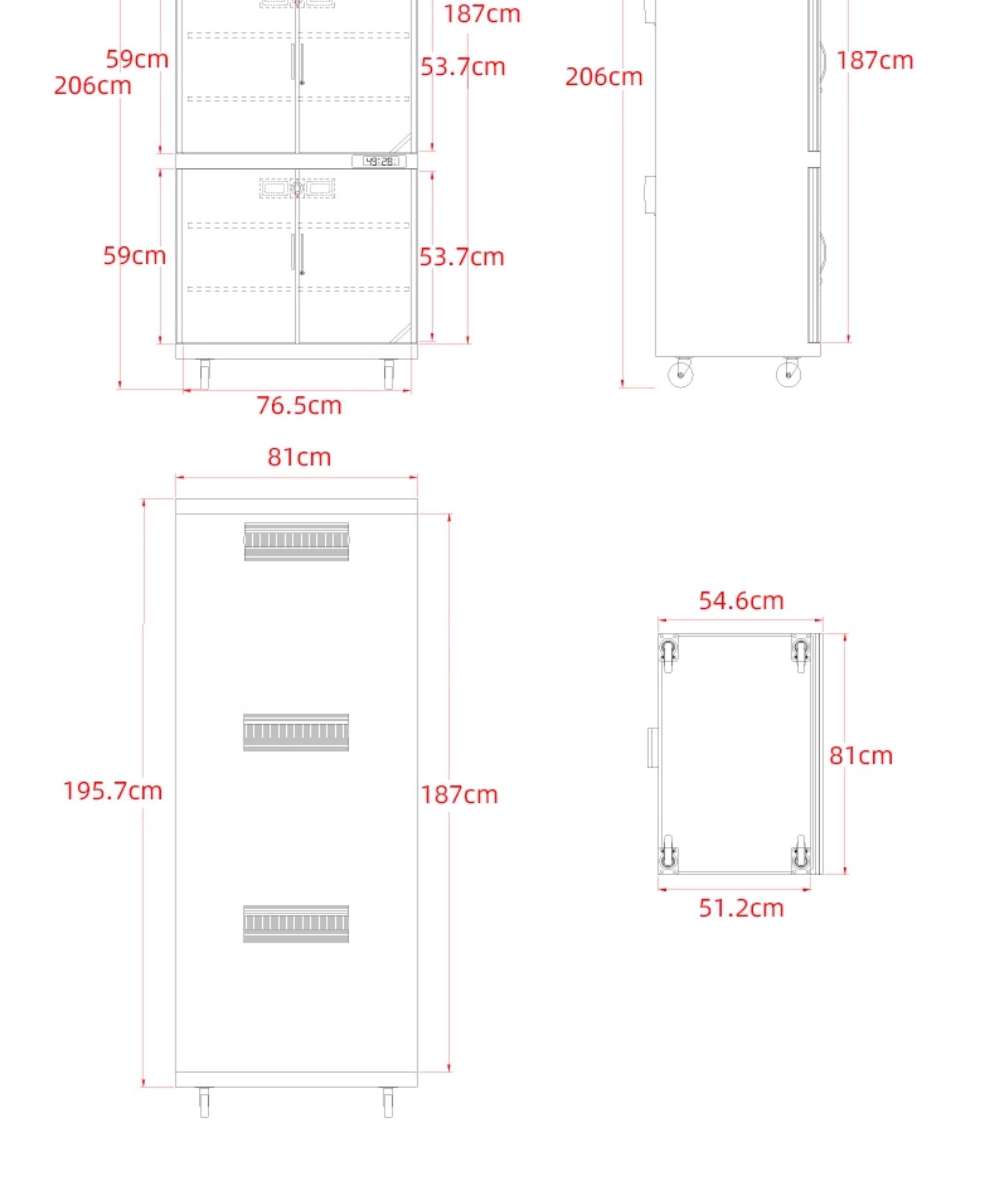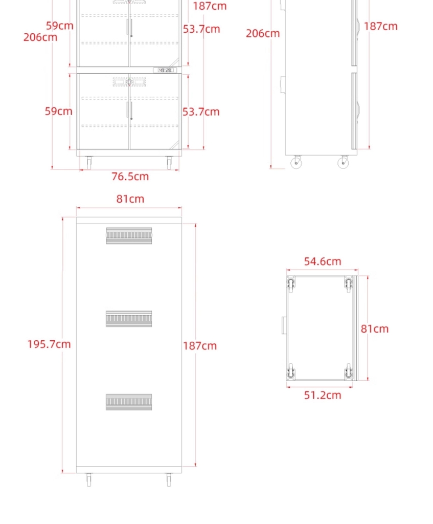 - Kích thước ngoài: 810x552x2070mm